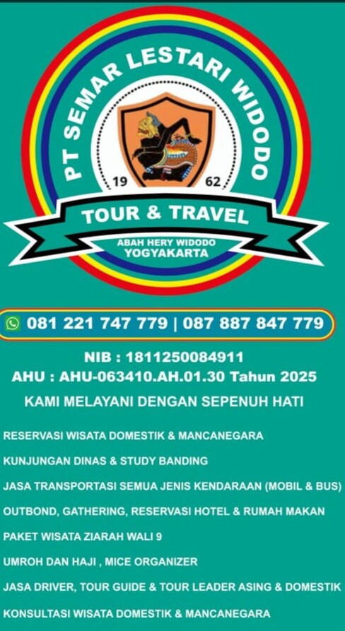 Sejak berdiri, PT Semar Lestari Widodo berkomitmen menjadi penyedia layanan perjalanan wisata yang profesional, aman, dan terpercaya. Dengan pengalaman lebih dari satu dekade di industri pariwisata, perusahaan ini telah melayani berbagai segmen pelanggan, mulai dari wisata keluarga, study tour, perjalanan dinas, gathering perusahaan, hingga private trip dan custom tour.